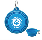 This collapsible silicone pet bowl is perfect for travel, walks, and trips to the dog park. Use the included silver carabiner to attach the bowl to backpacks, leashes, purses, and more. BPA free and made from high-quality silicone material. Easy to clean and top rack dishwasher safe.