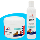 By pairing a water-based dental rinse with topical antimicrobial wipes, this bundle supports oral hygiene throughout the day while targeting problem areas along the teeth and gumline.