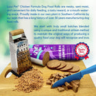 Your canine companion is going to go head over tail for Lucy Pet Products Chicken Formula Dog Wet Food! This meaty, semi-moist dog food roll can be served as a full meal or you can slice it, chop it or grate it and add it to Lucy Pet dry food for picky pups, older dogs or weaning puppies. This recipe is formulated for optimum nutrition, a healthy coat and high energy. It is paw-fect for training, focus and response time and can even be used for hiding medication—simply fold the pill into a piece of the roll! And since there is no refrigeration required until after it is opened, it is grrr-eat for travel and you can store unopened rolls in your pantry!