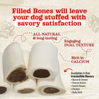 Dogs go nuts for peanut butter and our Peanut Butter Filled Bones are no exception. As dogs work to lap up every ounce of peanut butter, they also enjoy a thorough dental cleaning with a side of calcium for stronger, cleaner teeth. Calcium also benefits your dog’s brain, bones, and muscles. And filled bones benefit your dog’s mood by providing a positive outlet for stress. Hard-and-soft textures create added excitement, and because they’re Natural Farm’s treats: they contain no harmful additives, hormones, or artificial flavors or colors. Best for small and medium breeds.