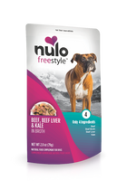 Nulo’s FreeStyle Beef, Beef Liver, & Kale in Broth Dog Food Topper will turn your doggy’s dinner into a gourmet meal! This delectable culinary creation is made with all-natural minced beef, beef liver and real kale for a nutrient-rich flavor explosion your pup will go wild for. It contains absolutely no gums, tapioca, potato starch, grains or additives of any kind so your pup can enjoy this tasty treat without fillers. Packed with high-quality animal protein to help support lean muscle, this meal enhancer can be served atop kibble or as a healthy snack that’ll have your pup’s tail wagging.