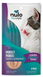When nutrition meets love, the result is simply purrr-fect. Nulo FreeStyle™ Chicken & Salmon Perfect Puree is a tasty way to show your tiny tiger how special they are to you while delivering a highly nutritious reward! Serve directly from the packet as a lickable treat or use as a topper to kibble or canned food! Nulo's Perfect Purees are a treat for pet parents to feed and for cats of all ages to eat!