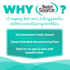 Nutrisource pet food has created the highest-quality food for your beloved pets. Nutrisource is formulated with the best ingredients and supplements that guarantee whole body health. Priority number 1 is to deliver the safest, most nutritious foods possible by examining all raw ingredients and testing every product during and after cooking. A deep rooted sense of family, community and integrity guides every decision, from the top to the bottom. With options for every dog and cat, such as large breed, small breed, seafood, beef, chicken, wet, dry, grain-free, and more, you'll know your pet is getting the very best with Nutrisource.