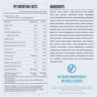 Chicken, turkey, salmon, whole herring, chicken giblets (liver, heart, gizzard), dehydrated chicken, dehydrated turkey, dehydrated chicken liver, dehydrated egg, dehydrated sardine, chicken fat, whole red lentils, whole pinto beans, whole navy beans, whole green lentils, whole chickpeas, whole peas, freeze-dried chicken, turkey giblets (liver, heart, gizzard), eggs, natural chicken flavor, dried apple pomace, pollock oil, vitamin E supplement, whole cranberries, dried kelp, salt, zinc proteinate, mixed tocopherols (preservative), whole pumpkin, whole butternut squash, whole zucchini, whole carrots, whole apples, whole pears, kale, spinach, beet greens, turnip greens, whole blueberries, niacin, thiamine mononitrate, calcium pantothenate, pyridoxine hydrochloride, riboflavin, folic acid, vitamin B12 supplement, copper proteinate, dried Bacillus coagulans fermentation product, dried chicory root, turmeric, sarsaparilla root, althea root.