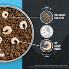 Make every meal enjoyable for your dog and convenient for you with ORIJEN™ WILD RESERVE™ dog food. The WILD RESERVE Wild-Caught Fish recipe provides all the nourishing, protein-packed dry food pets enjoy and elevates it with 100% shrimp morsels, freeze-dried to preserve flavor and nutrition for your dog. Made with nutrient-dense WholePrey animal ingredients and no fillers, this recipe provides your dog with the nutrients that help them thrive.