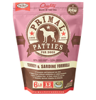 At Primal Pet Foods, we've taken the time to sustainably source, carefully formulate and lovingly produce a nutritious, human-edible raw diet that is easy for you to serve and delectable for pets to devour. The proof is watching them lick the bowl clean and thrive!Turkey, Turkey Necks, Whole Sardines, Turkey Hearts or Turkey Gizzard, Turkey Livers, Organic Collard Greens, Organic Squash, Organic Cranberries, Organic Blueberries, Organic Pumpkin Seeds, Organic Celery, Organic Sunflower Seeds, Montmorillonite Clay, Organic Apple Cider Vinegar, Organic Cilantro, Organic Ginger, Organic Coconut Oil, Organic Quinoa Sprout Powder, Organic Ground Alfalfa, Dried Organic Kelp, Vitamin E Supplement..
