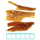 The texture is similar to a very firm beef jerky. It can be a long-lasting chew for young puppies and small breeds, or a tasty snack for larger dogs. There will be a variation in the size and shape of each piece.