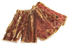 Chew Meter: Medium. The texture is similar to a firm jerky, and pieces can be folded and broken off of each strip.