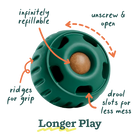 Open the Pupsicle by unscrewing the two halves, drop in a treat, and give it to your dog. It’s as simple as that! When you're finished, open the halves and rinse or drop it in the dishwasher. Treat, rinse, and repeat!